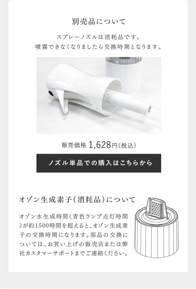 ※通常のご使用において故障が発生した場合のみ。消耗品(スプレーノズル、オゾン生成素子)・付属品は除きます。