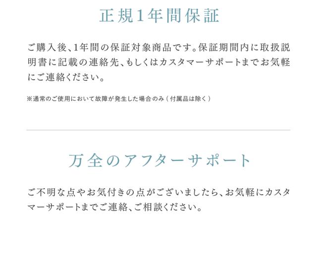 ご購入日より1年間(本体)の保証を致します。