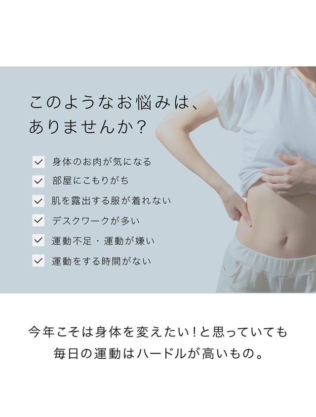 本製品は、 EMS 低周波電気刺激 による 筋肉へアプローチする トレーニング マシーンです。 直接的な ダイエット 効果はありませんが、ダイエットの為の運動 / トレーニング 補助機器としてお使いください。
