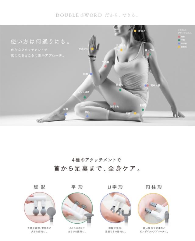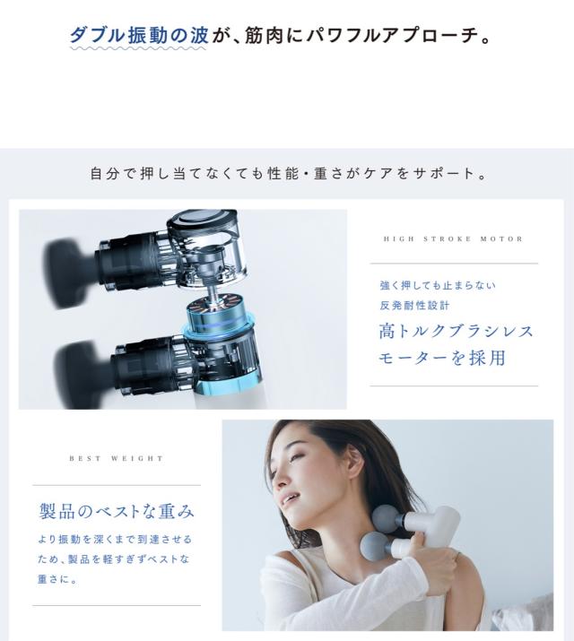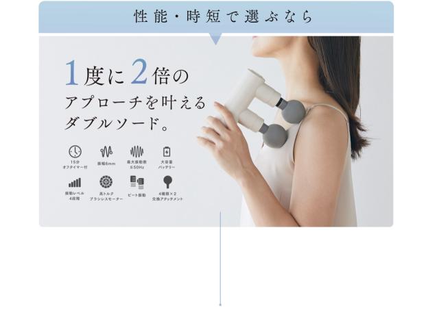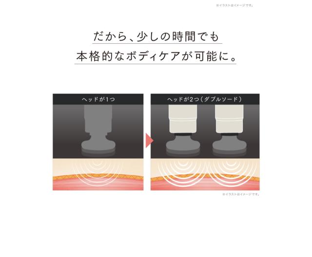 性能と時短で選ぶなら!一度に二倍のアプローチを叶えるダブルソード。2つのヘッドでより広範囲に心地よい刺激を届けます。
