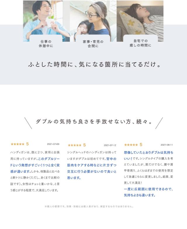 ※ " 医療機器認証済み "の本格的な" マッサージ機器 "のため、" あんま "や" マッサージ "の代用(一般家庭で使用すること)として、効果の表示が認められています。