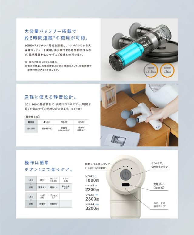 ※ 本製品は、ボディケア 雑貨です。 肩 や 腰 などの治療は行えません。恐れ入りますが、医療機器である専用の マッサージ機 / マッサージ器 ハンディ タイプ 等 ( マッサージガン , フットマッサージャー , フットマッサージ , ハンディマッサージャー , ハンドマッサージャー )を別途お買い求めください。