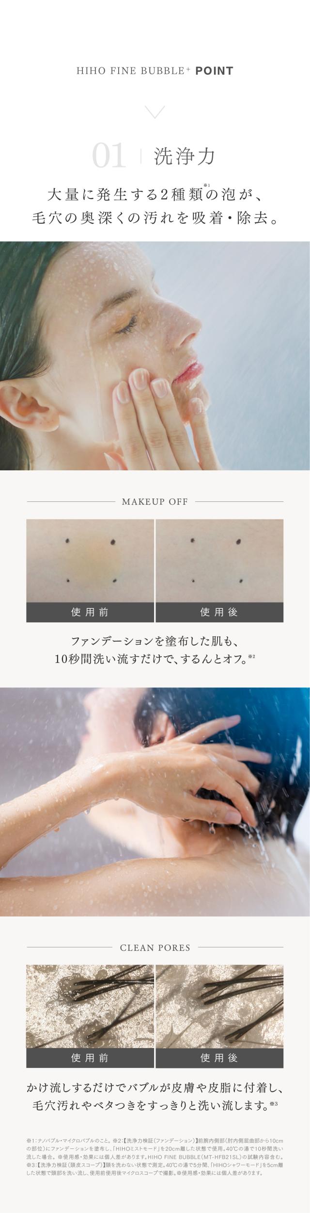 HIHO FINE BUBBLE+は基準値より「小さく」「大量」の泡で、毛穴に潜む汚れにアプローチします。