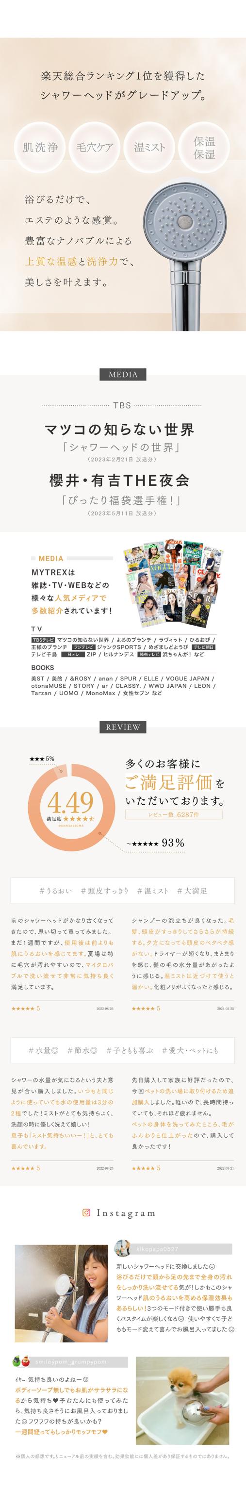- モードが汎用的に3種類あるのが気に入っています。水流が弱めが好きな私と強めが好きな主人とで意見が割れ、数ヶ月にわたりシャワーヘッドの調査・検討をした結果、MYTREXのシャワーヘッドに行き着きました。...
