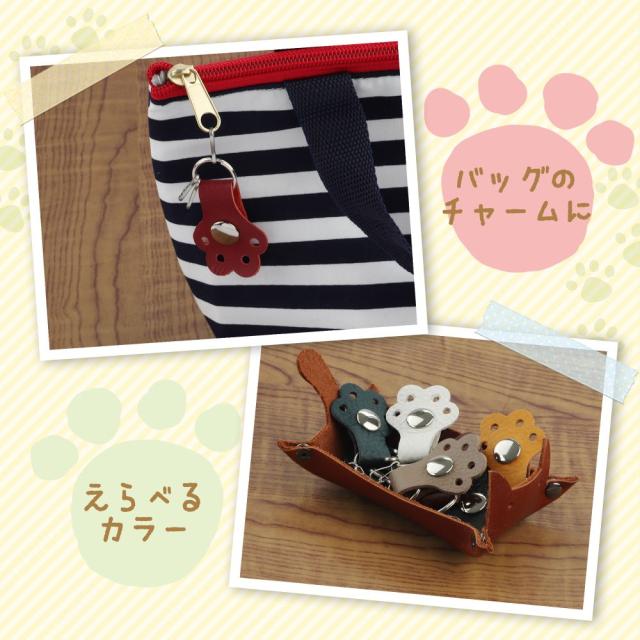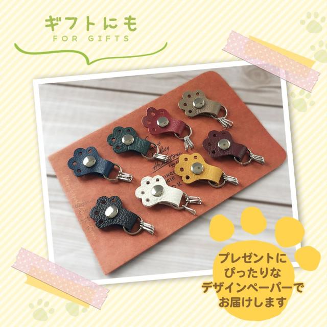 本革 キーホルダー 日本製 かわいい 肉球 猫 犬 手 動物 8色 ギフト プレゼント おそろい ペア 小物 雑貨 革 レザー チャーム 鍵 キーリング Hukuria HANATORA made in Japan