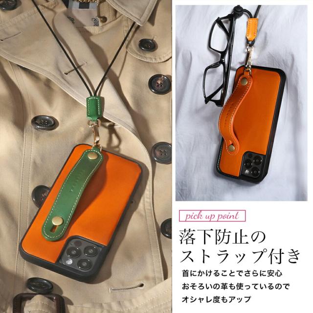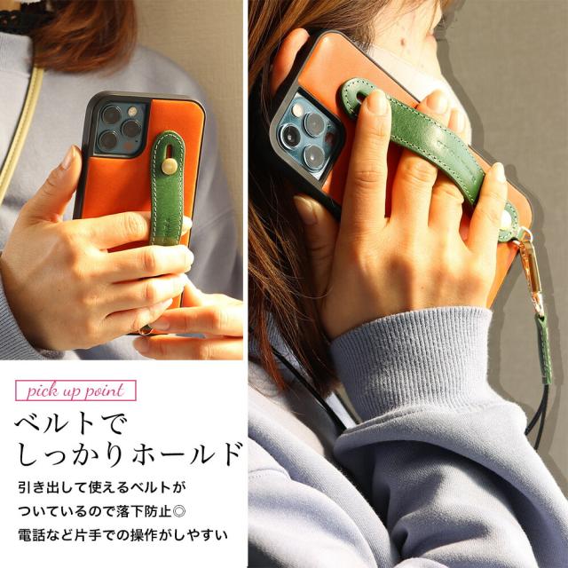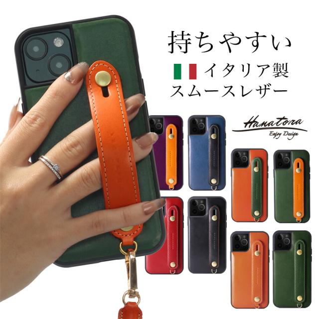 iPhone 16ケース スマホケース iPhone 15ケース iPhone 14ケース 本革 携帯ケース iPhone 13ケース ベルト付き ストラップ付き スタンド 高級 iPhone12 Pro Max mini 耐衝撃 イタリアン レザー ハンド ホルダー ベルト アイフォン メンズ レディース HANATORA ハナトラ