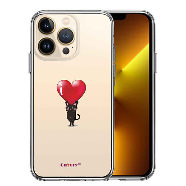 iPhone13 Pro ケース ハードケース ハイブリッド クリア 猫 ネコ にゃんこ ハート 黒猫 カバー アイフォン スマホケース