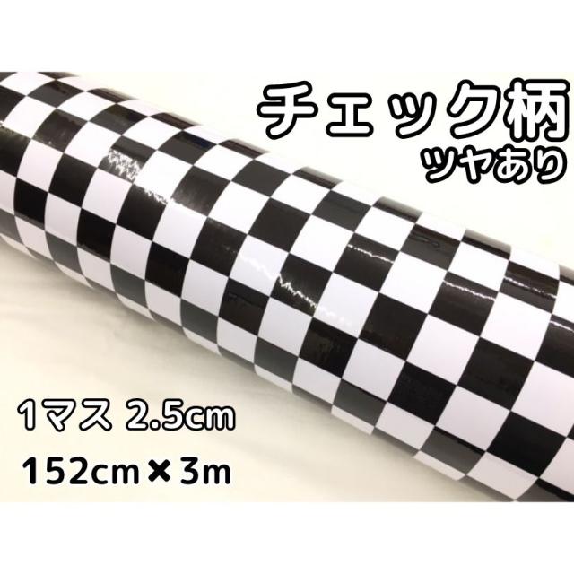 ラッピングシート 150cm×3m 艶ありチェック柄チェッカーフラッグ2.5cm角 カーラッピングフィルム 耐熱耐水曲面対応裏溝付 カッティングシート