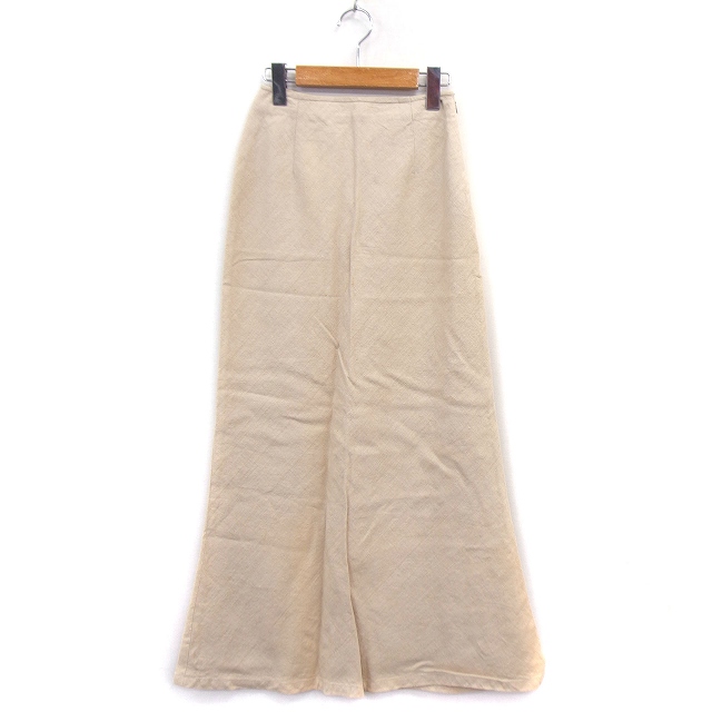 【中古】エミスフェール HEMISPHERES Aライン スカート ロング マキシ丈 リネン 麻 無地 シンプル 2 ライトベージュ