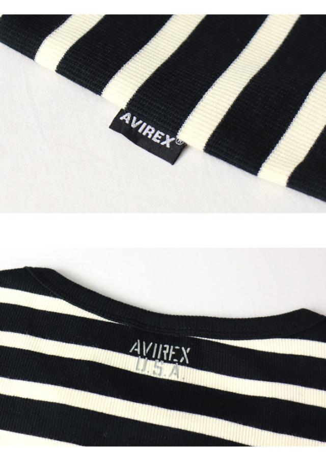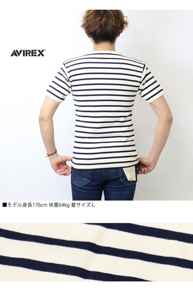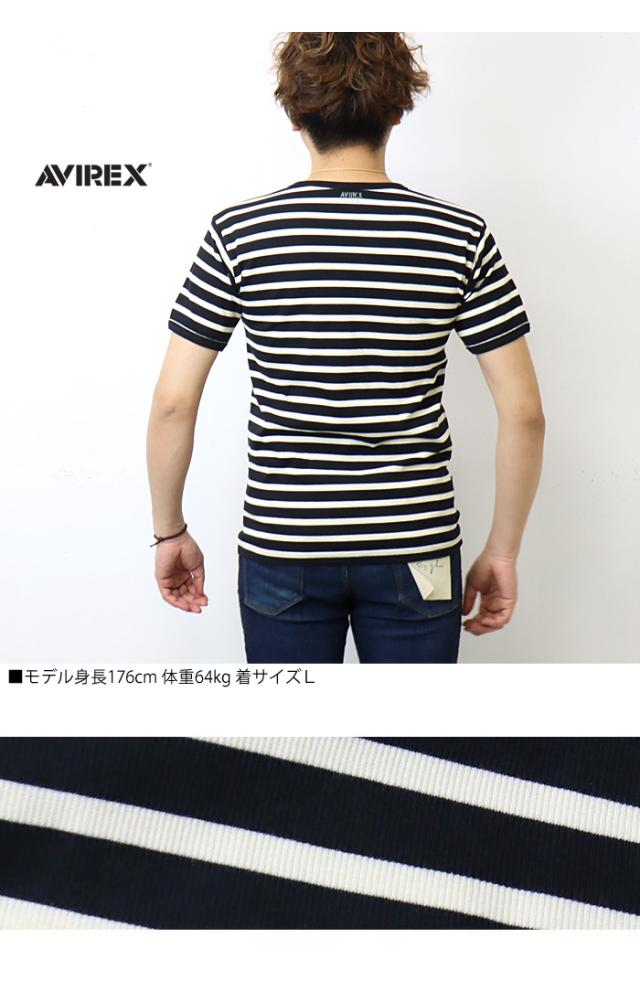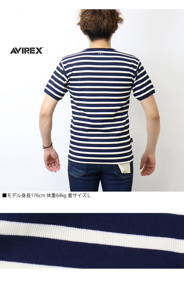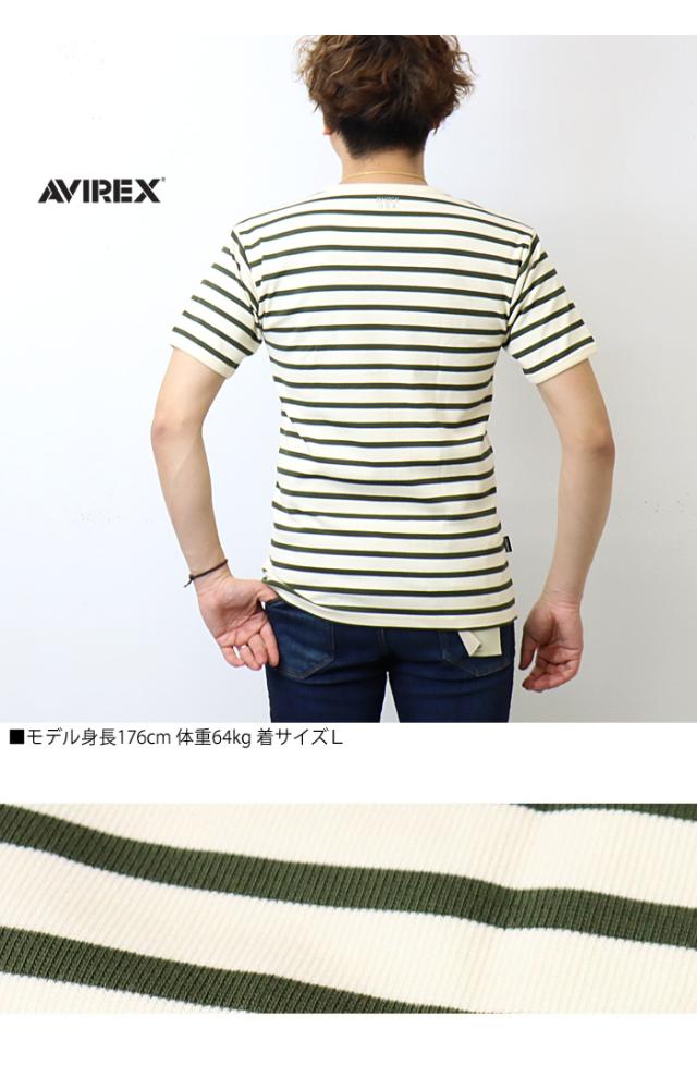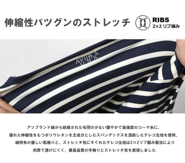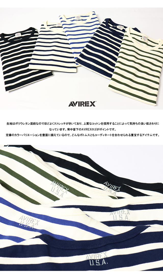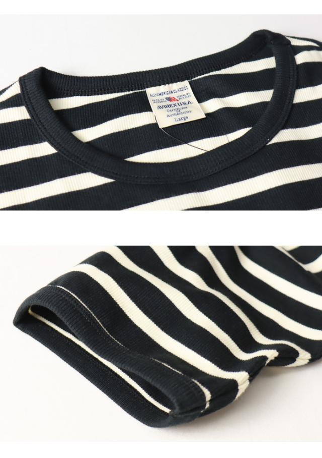 AVIREX アヴィレックス リブ素材 ボーダー クルーネック 半袖Tシャツ メンズ 半T テレコ素材 アビレックス 6123302