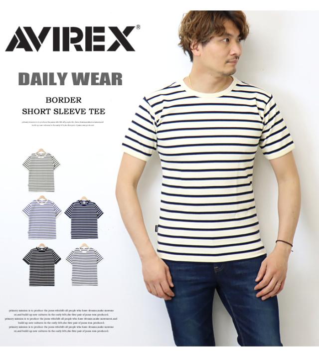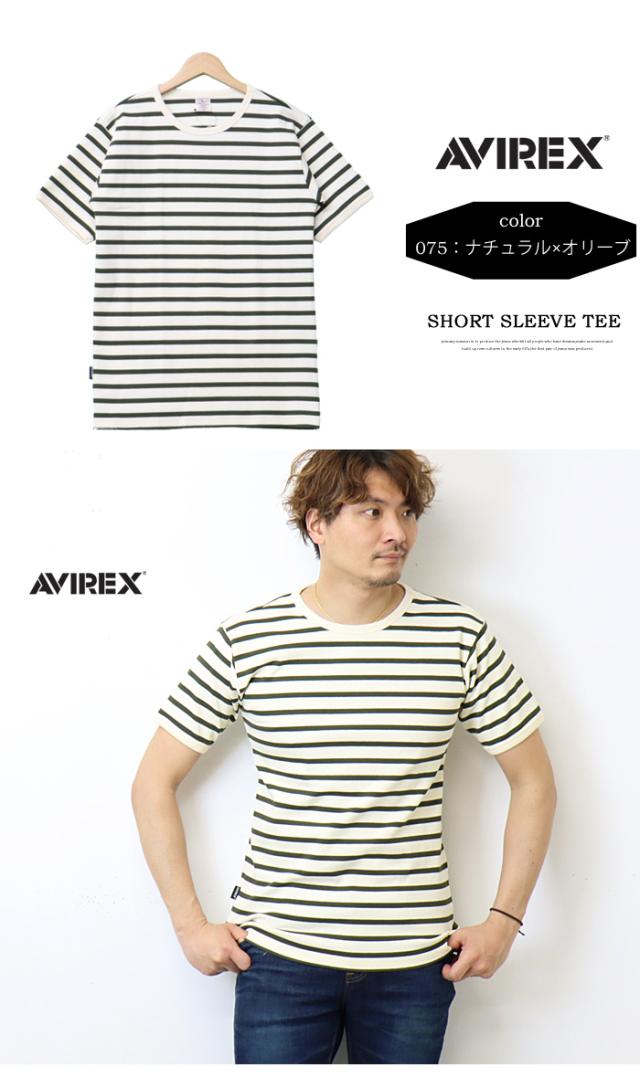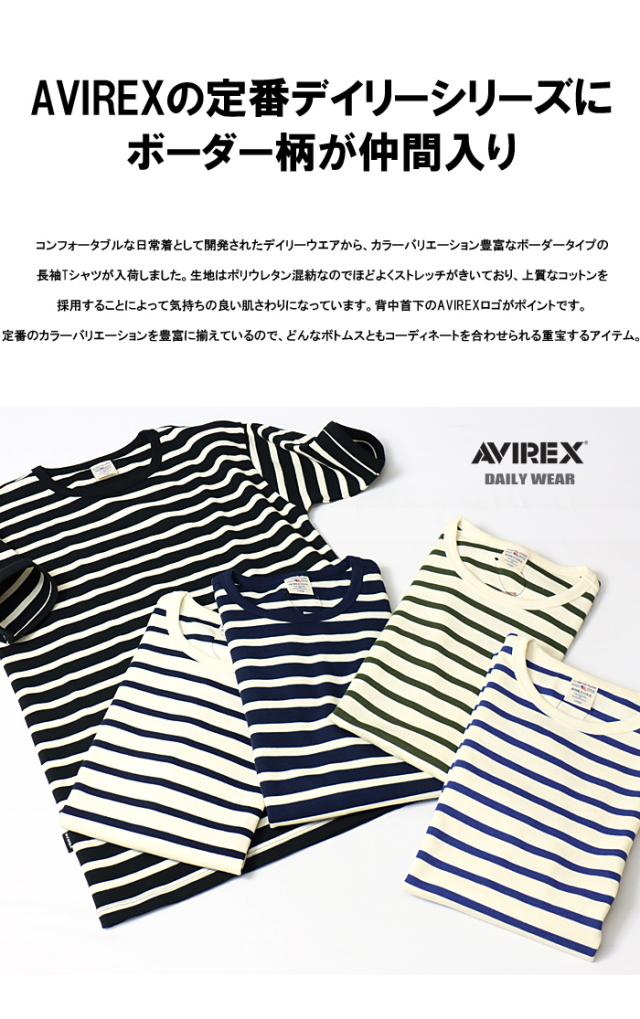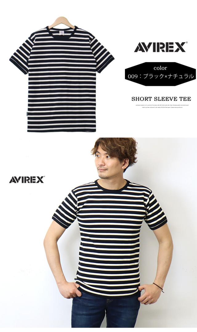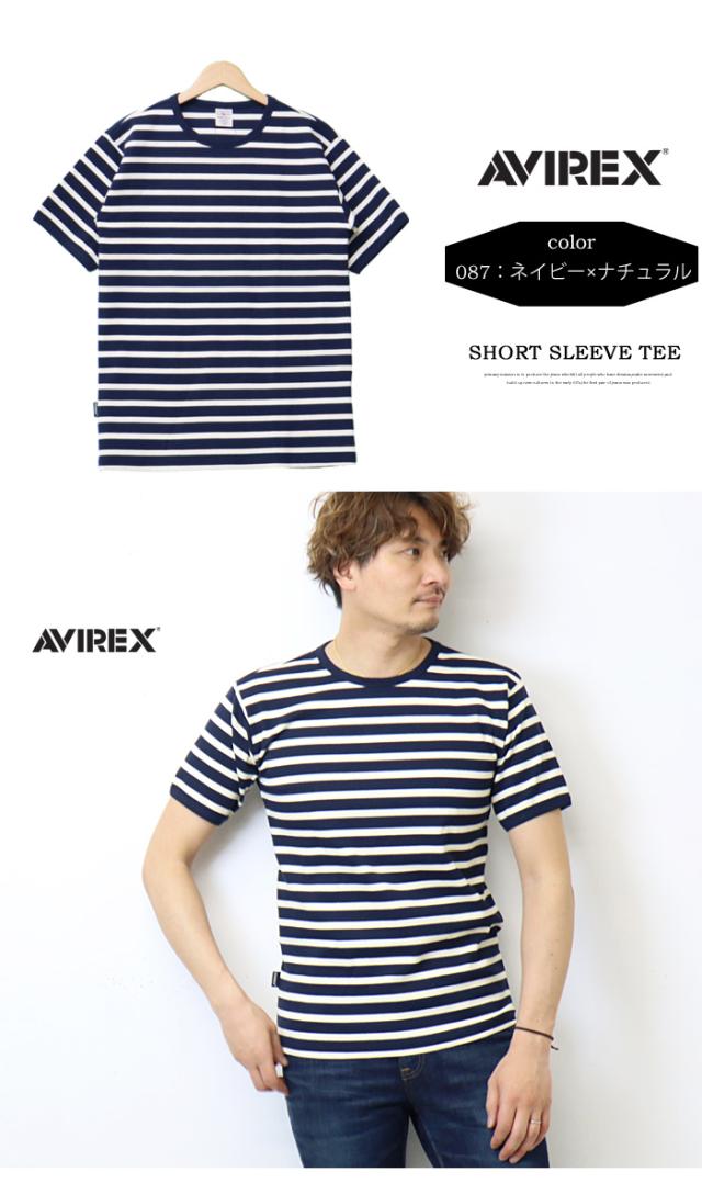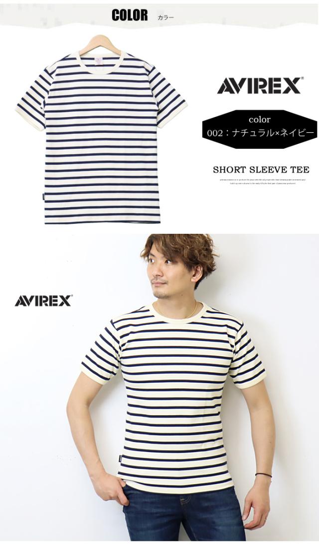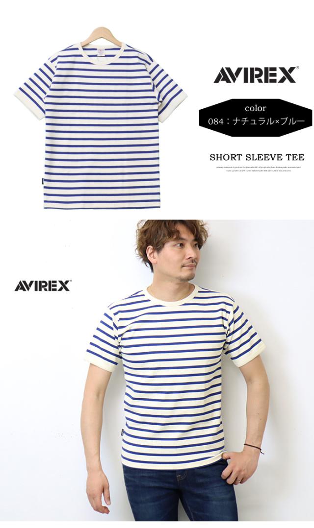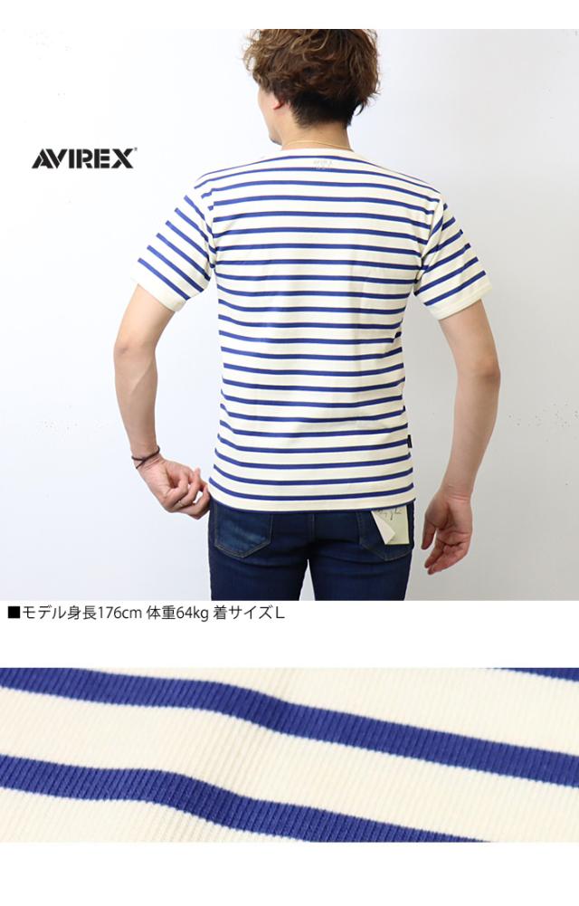 AVIREX アヴィレックス リブ素材 ボーダー クルーネック 半袖Tシャツ メンズ 半T テレコ素材 アビレックス 6123302