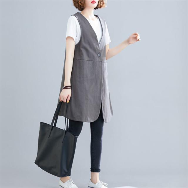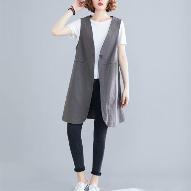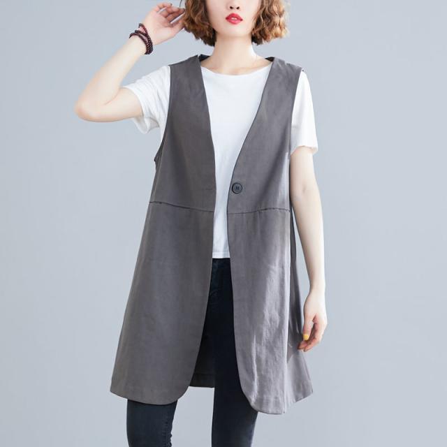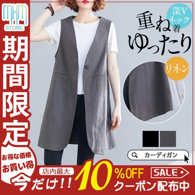 【水曜日まで!10%クーポン配布中】 ベスト カーディガン ロングベスト レディース フォーマルベスト 深Vネック 春 夏 秋 薄手 リネン ゆったり 通勤 カジュアル
