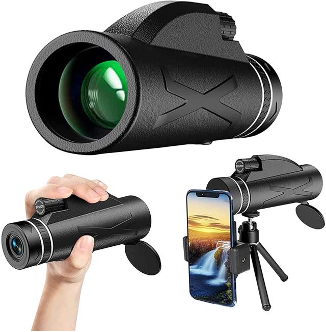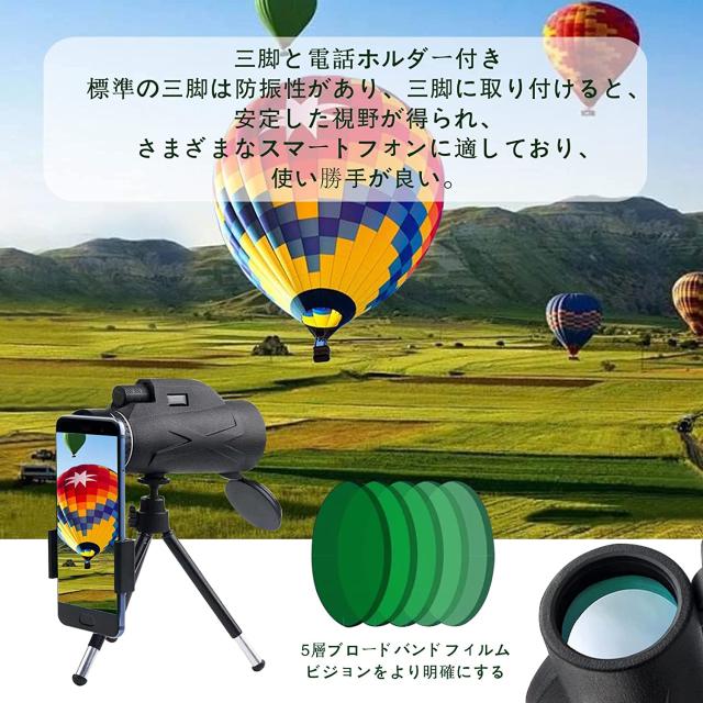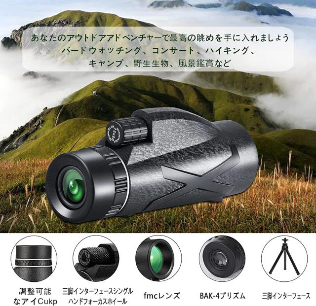 80x100高倍率レンズ コンパクト単眼鏡 防水霧 小型 軽量 耐衝撃 望遠鏡 広角 野鳥観察 bak4プリズム スマートフォン対応 三脚付き