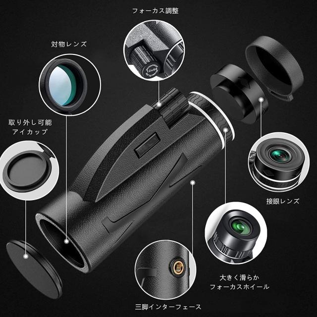 【三脚とスマホホルダー付き】三脚は滑り止めと手ぶれ防止機能があり、安定した視界が得られます。スマホホルダーはほとんどのスマホに対応して、3秒で取り付ける可能です。スマートフォンと組み合わせることで、美しい瞬間を写真に収めることができます。初心者にも気軽いに使用できます。