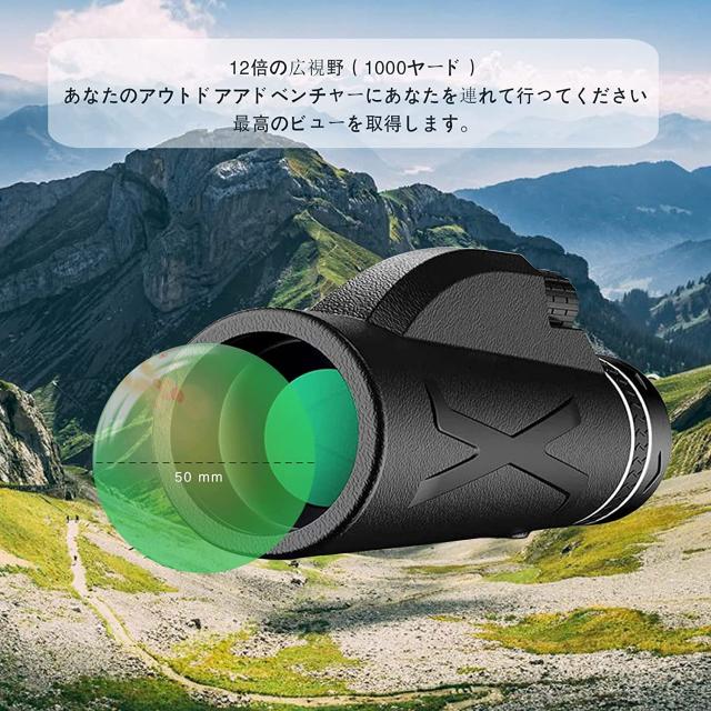 【40(80x100)倍高倍率】単眼望遠鏡は直径50mm、広視野(1000ヤード)で40倍の倍率が得られるので、アウトドアアドベンチャーで最高の視界を得ることができます。バードウォッチング、コンサート、ハイキング、キャンプ、野生動物、風景の鑑賞などに非常に適しています。