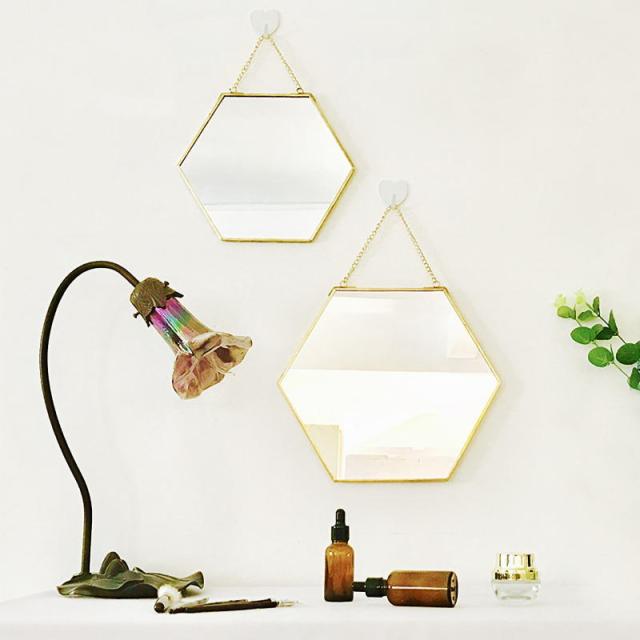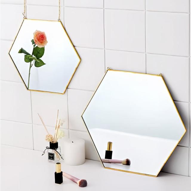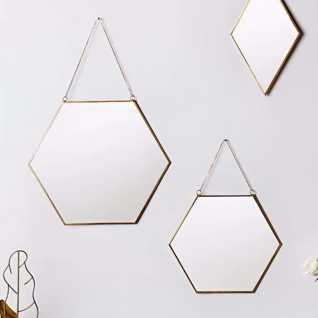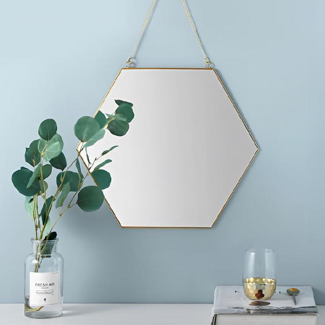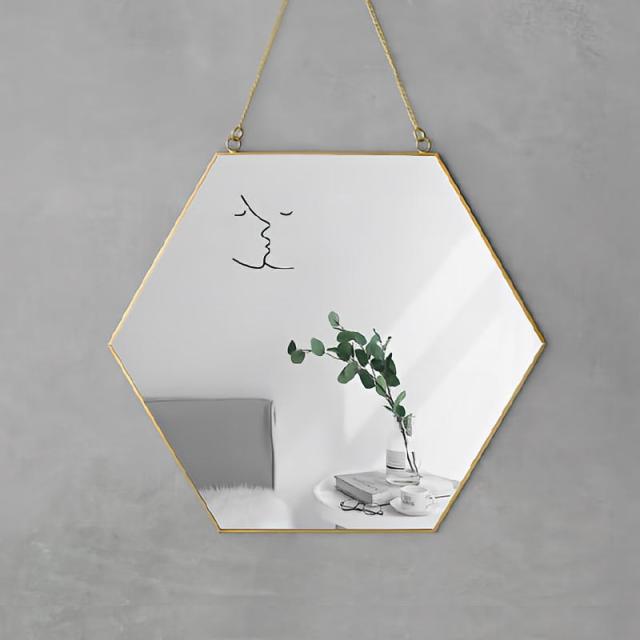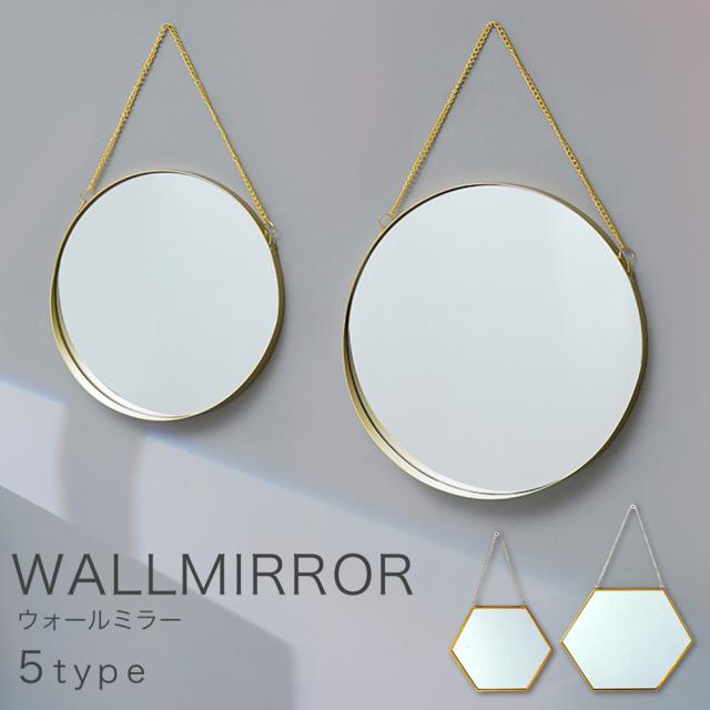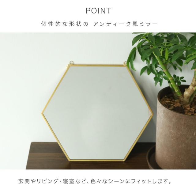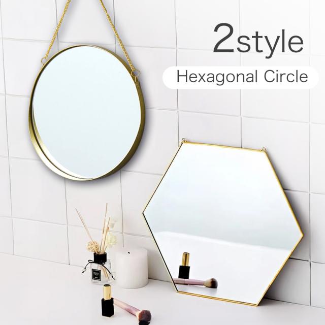 ウォールミラー 壁掛け 鏡 ミラー おしゃれ 洗面 姿見 丸 六角形 角型 北欧 アンティーク 細枠 全2種 姿見鏡 壁掛けミラー かがみ