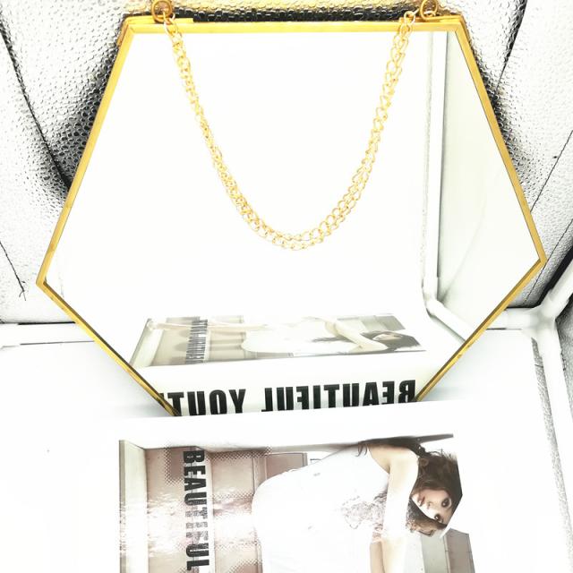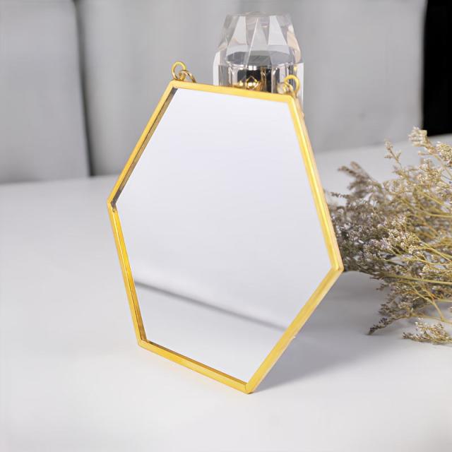 枠に合わせたゴールドのチェーン付で、フックなどに掛けるだけで簡単に設置できます。