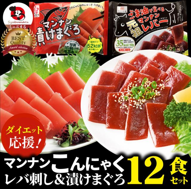 こんにゃく マンナン レバー&漬けまぐろ おつまみ 低カロリー(12袋セット)1袋あたり35kcal&52kcal 希少糖入り 低糖質 糖質制限 おかず 置き換えダイエット マンナンミール ダイエット TVで話題 備蓄 備蓄食 食料 備蓄品 お肉の しゃぶまる