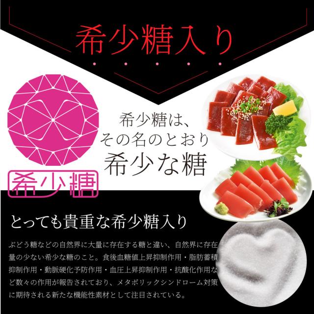 | ●マンナン漬けまぐろ・漬けダレ | 醤油(国内製造)、希少糖含有シロップ、味醂、こんにゃく精粉(国産)、つゆ(醤油、食塩、砂糖、その他)、食塩、砂糖、魚醤(魚介類)、醸造酢、魚介エキス(魚介類)、果糖ぶどう糖液糖、昆布エキス、黒糖蜜(黒糖、原料糖、液状ぶどう糖)、酵母エキス/加工澱粉、酸味料、調味料(有機酸等)、乳酸カルシウム、増粘剤(加工澱粉)、酸化防止剤(V.C)、アルコール、トマト色素、結晶セルロース、イカスミ色素、カロチン色素、(一部に大豆・小麦・魚醤(魚介類)・魚介エキス(魚介類)・いかを含む) |