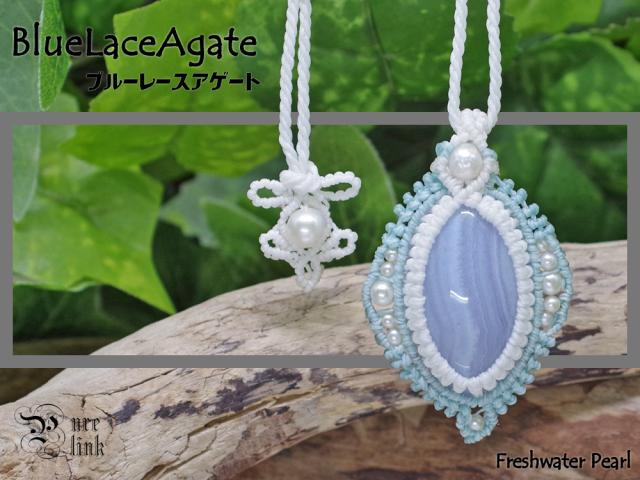 魅了する魔石『ブルーレースアゲート』『パール』マクラメ編ネックレス