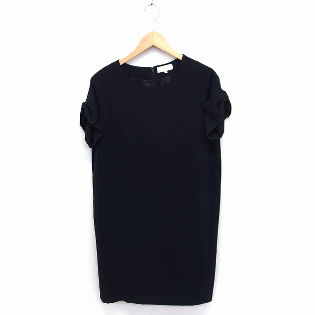 【中古】アルファキュービック ALPHA CUBIC リボン袖 ワンピース ロング 半袖 丸首 無地 ゆったり 9 ブラック 黒 /FT