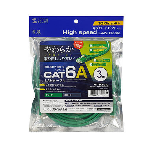 KBT6AY03GX5 超高速10ギガビットイーサネット完全対応、より線仕様のCAT6A LANケーブル
