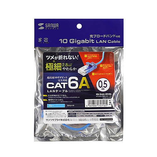 KBSL6A005BLX5 安心のつめ折れ防止コネクタと、取り回しの良い超極細ケーブル採用の10Giga対応CAT6A LANケーブル
