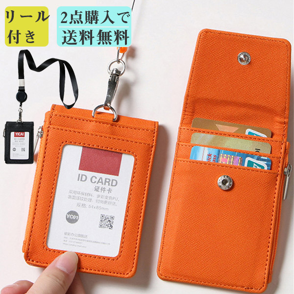 ポイント超超祭 【2点購入で送料無料】 パスケース ネックストラップ付き カードケース リール付き 伸びる ICカードケース 伸縮 定期入れ IDカード ファスナー