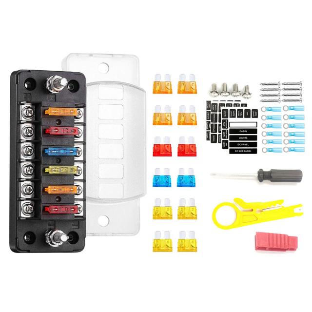 ユニバーサルカーモディファイドヒューズボックスヒューズホルダー6ウェイポジティブネガティブヒューズボックス、LEDライト付き車両用カーボートマリンオート