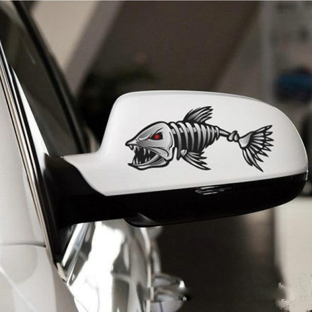 1ペアフィッシュスケルトンプリントカーデコラティブステッカーリフレクティブカーステッカー