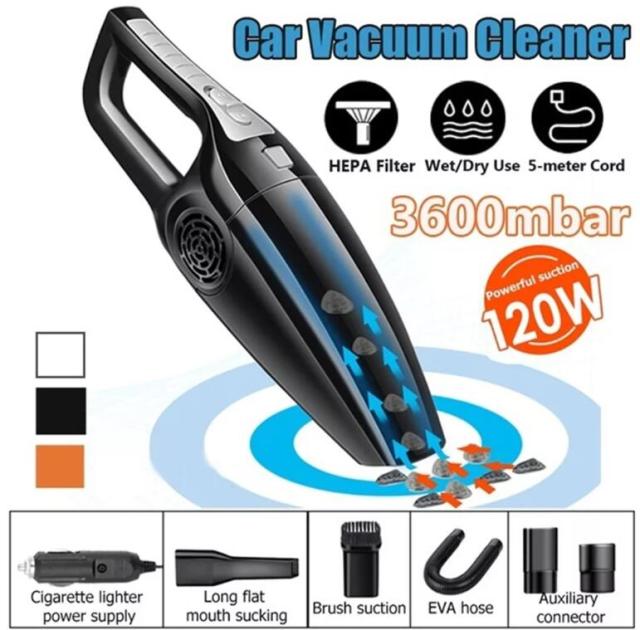 120W3600mbarカーバキュームクリーナーウェットアンドドライデュアルユースバキュームクリーナーハンドヘルド12Vカーバキュームクリーナー