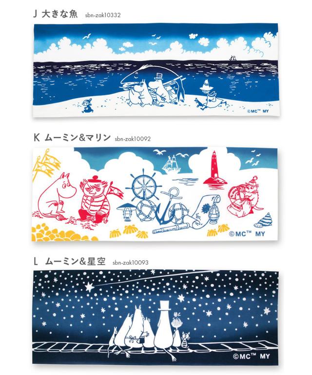 幻想的で可愛らしいムーミンと仲間達が描かれた注染手ぬぐいです。