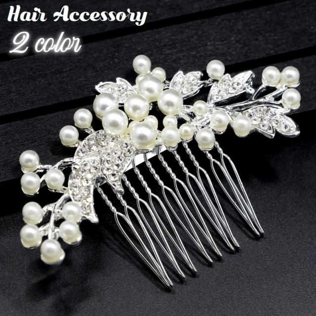 ヘアコーム レディース ヘアアクセサリー 髪飾り 髪留め かんざし パール調 ラインストーン フラワー 花 成人式 結婚式 パー