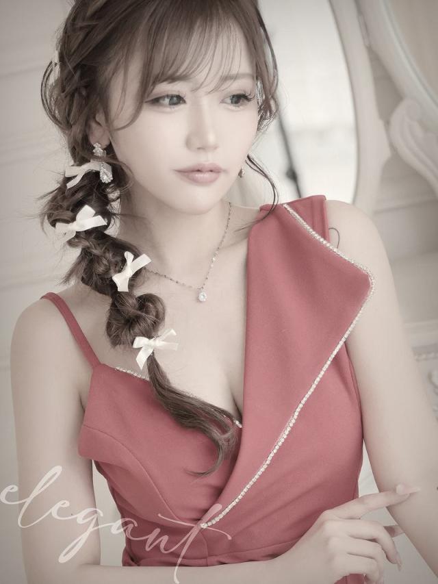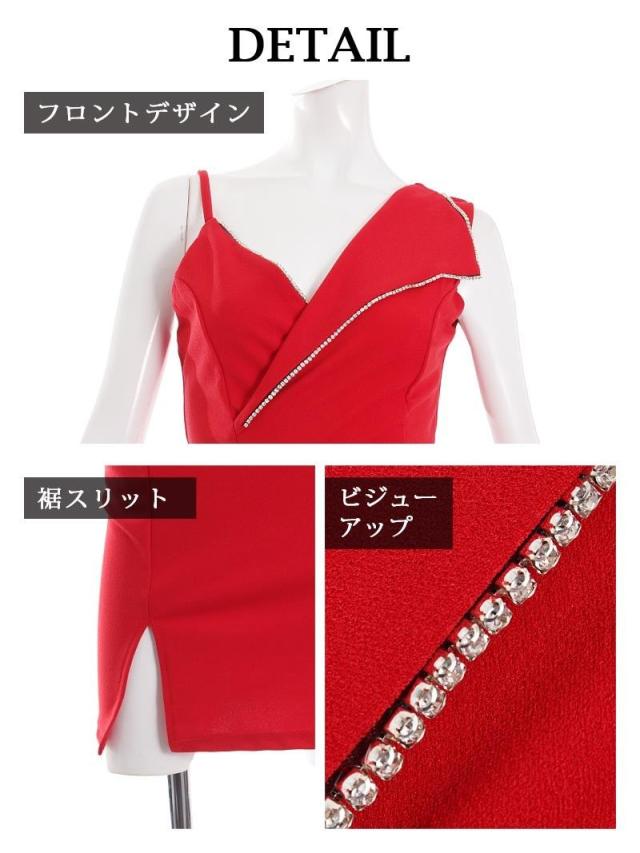 ☆シャツの襟のようなアシンメトリーなデザインに沿って施された煌めくラインストーンがお顔周りを華やかに魅せてくれるタイトドレスです♪