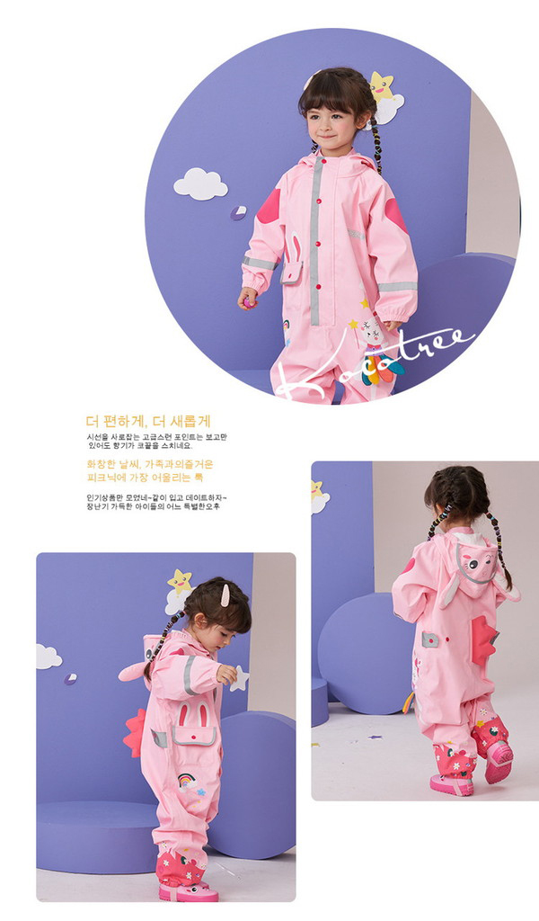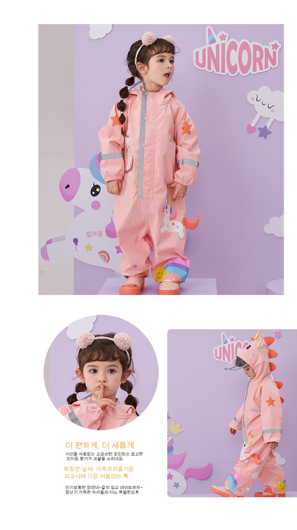 ・防水性:耐摩耗性に優れた素材を使用し、丈夫で強力に雨を防水。表面には撥水加工を施し、縫い目には雨がしみ込まないように防水加工を施しています。 ロンパースのデザインは風や雨の浸入を防ぎます。