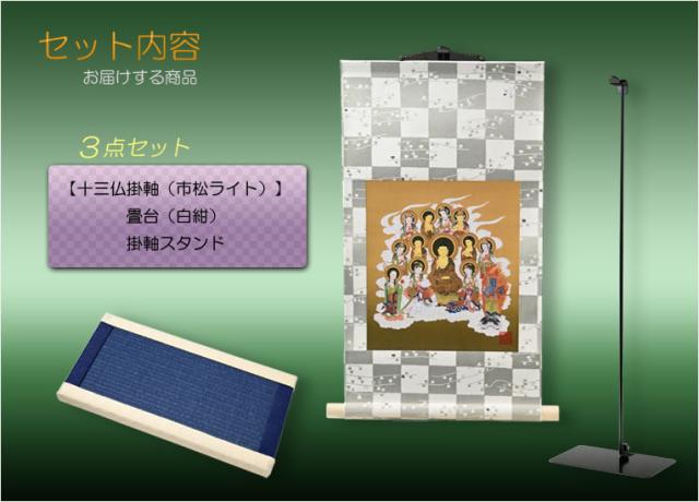 ・【十三仏掛軸(市松ライト)】+畳台(白紺)+掛軸スタンド