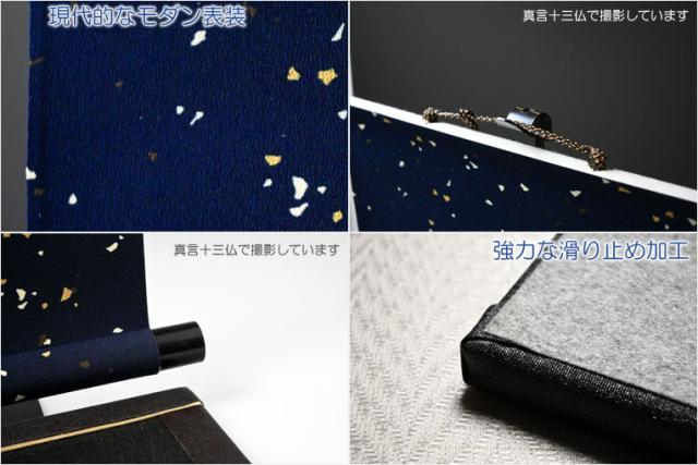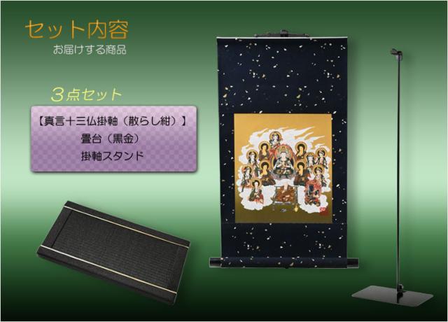 ・【真言十三仏掛軸(散らし紺)】+畳台(黒金)+掛軸スタンド