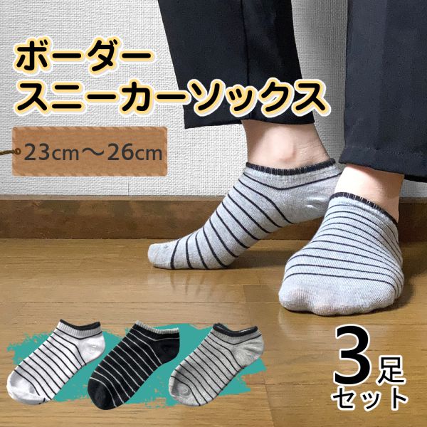 3足セット スニーカーソックス くるぶし 靴下 ボーダー 男女兼用 メンズ レディース アンクル ライン スニーカー 送料無料