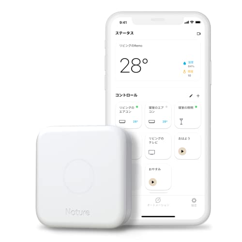 | 主な仕様 | 【Nature Remo とは】シリーズ累計販売台数30万台突破!テレビや雑誌、SNSでも話題のスマートリモコン 【スマートリモコンでできること】今ある家電はそのままに、スマートフォンから家電を操作。複数のリモコンをスマートフォンひとつにまとめられます。 【オートメーションで家電を自動化】外出先からエアコンをONにして温かい部屋に帰るのはもちろん、オートメーションを利用して、時間や位置情報、搭載されたセンサーを使って部屋の状況に応じて自動で家電の操作が可能になります。 Echo, Apple HomePod)と連携することで声で家電が操作できるようになります。 【簡単なセットアップ】旧式の家電でも操作が可能。ご自宅のWi-Fiをアプリから設定して、機器を登録すればすぐに使えます。リモコンはプリセットが用意されているので、ボタン一つで簡単に登録が可能です。 |