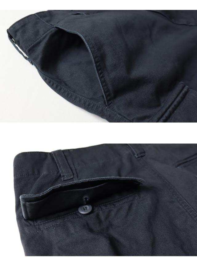 ジップフライ、フラップポケットなど、カーゴパンツの代表的で機能的なディテールはそのまま踏襲。ウエストアジャスターを無くすことで、よりカジュアルに使いやすいデザインにアップデートされています。