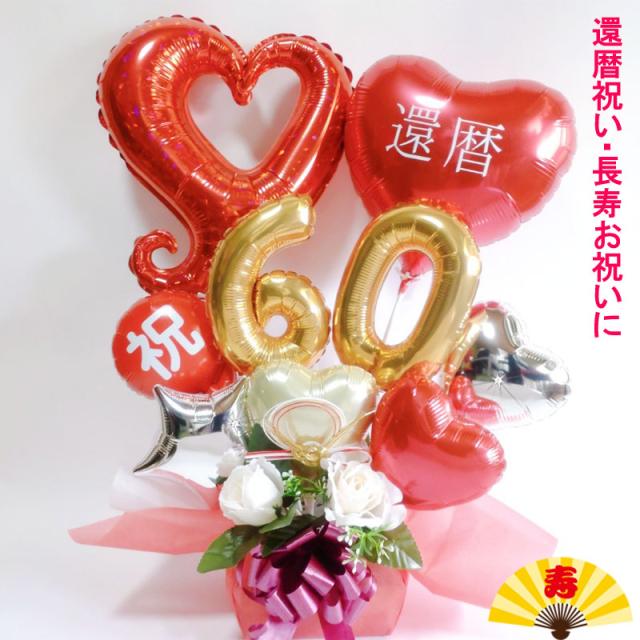還暦祝い バルーン バルーンギフト 還暦 誕生日 バルーンアレンジ おしゃれ 豪華 電報 赤 60歳 長寿 結婚祝い 卓上 お祝い 敬老の日 数字 プレゼント 男性 女性 バルーンフラワー