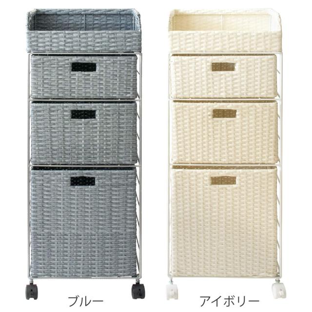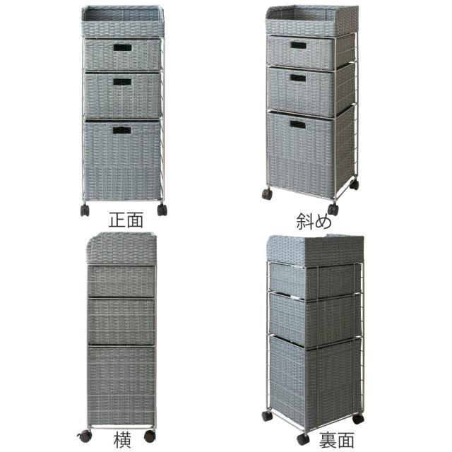 チェストのバスケットにはシボ(シワ)加工を施しているので、天然のラタンの雰囲気を味わえます。人口ラタンは変色や腐食がしにくく長持ちします。またラタンの内側には強度の高いスチールのフレームがあるので型崩れを防ぎ、衣類をしっかり支えます。