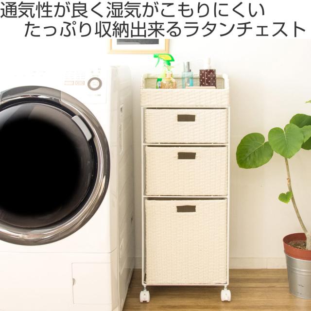 通気性が良く湿気がこもりにくいラタンチェストです。人口ラタンなので水や傷に強く撥水性があるので、汚れてもサッと拭くだけでお手入れ出来ます。チェストは本体完成品で、キャスターを取り付けるだけで届いたその日からお使い頂けます。