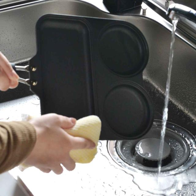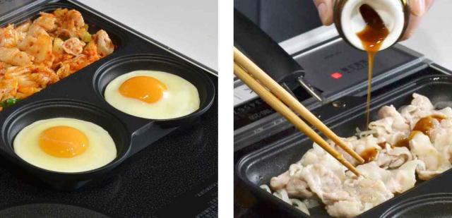 丸い部分と四角い部分にそれぞれ分かれているので、におい移りや汁気などを気にせずに調理できて、朝食やお弁当など忙しい朝に便利です。