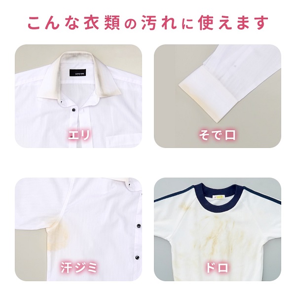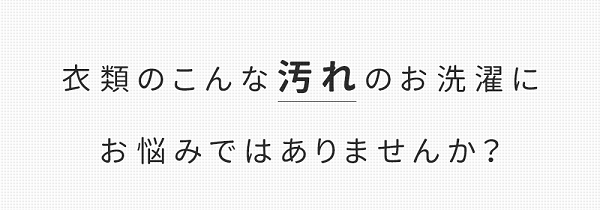食べこぼし汚れ、エリ・そで汚れ、汗ジミ汚れなどの様々な汚れを落とす業務用のポイント洗剤。