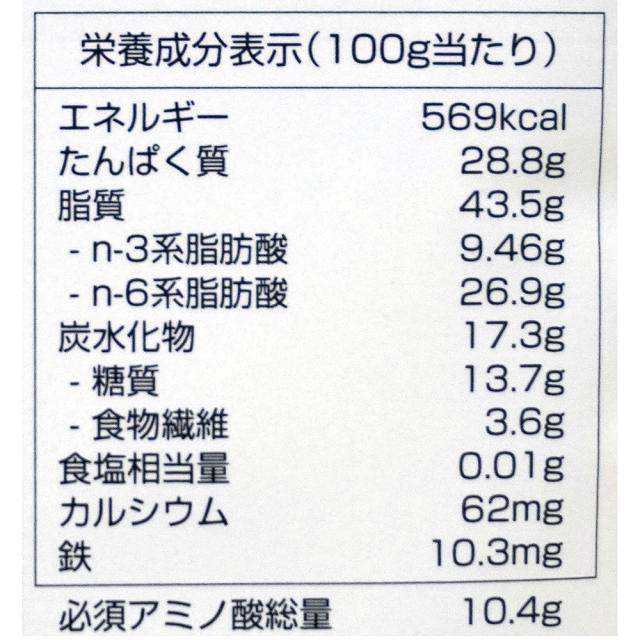 | 脂質 | 43.5g(n-3系脂肪酸9.46g、n-6系脂肪酸26.9g) |