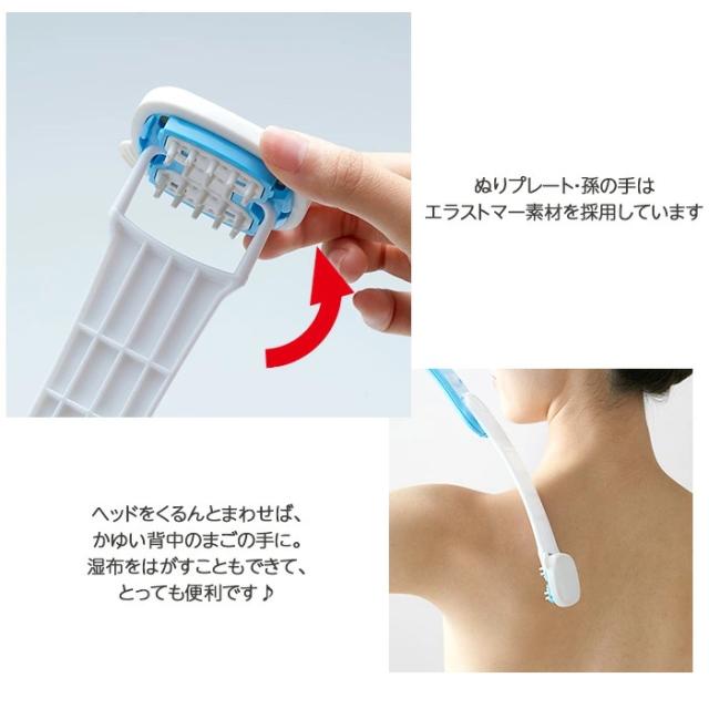 背中のほか、肩や腰、首などにもムリなくぬれて、疲れません。