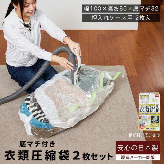 衣類圧縮袋 押入れケース用 2枚入 化粧箱入り 衣類収納袋 バルブ式 品質保証の日本製