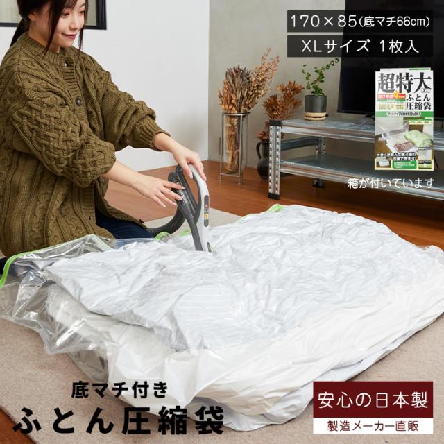 布団圧縮袋 XLサイズ1枚入 箱入り 超特大 ふとん圧縮袋 布団一式 バルブ式 品質保証の日本製