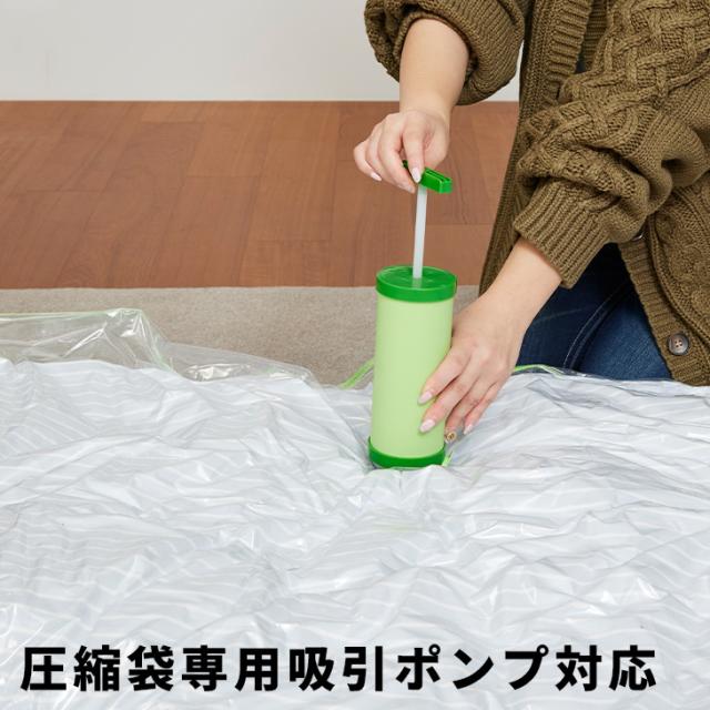 ・(シングル掛けふとん4枚)または(掛け2枚、敷き1枚、毛布2枚)までまとめて入ります。・バルブ式 ・スライダー装着済み